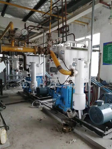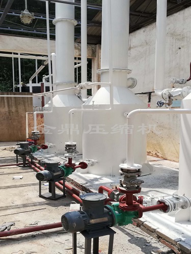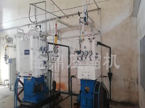 氣體經(jīng)系統(tǒng)閥門由進氣管路進入壓縮機內(nèi),經(jīng)壓縮機壓縮后,由排氣連通管排入氣液分離器中,經(jīng)氣液分離器排出。